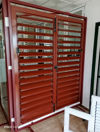 Mallorquina abatible de color burdeos Medidas 217 CMS alto y 180 CMS ancho - Lamas orientables