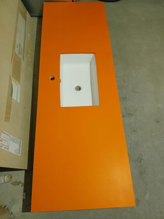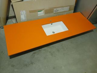 Encimera de cocina o baño en color naranja. Sin uso - Material: Silestone. - Diseño moderno y llamativo. - Fregadero bajo encimera - 173,5x58 (con posibilidad de adaptarla)