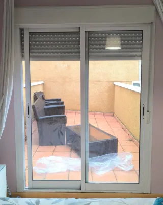 Ventana corredera de aluminio con persiana enrollable. - Medidas: 1.98*2.08 - Marco y hojas de aluminio blanco. - Cristal CLIMALIT - Persiana enrollable
