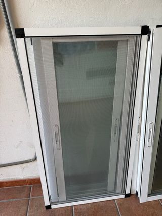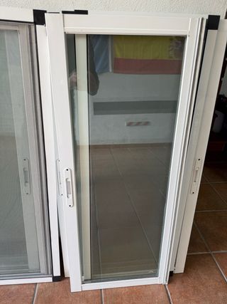 Varias hojas de ventana correderas de aluminio con doble acristalamiento Climalit. Listas para instalar y mosquiteras. - Sin marco, sólo las ventanas. - Cristal Climalit para aislamiento térmico y acústico. - Sistema de corredera suave y funcional. Precio según tamaño. Para ventanas de 120cm de alto