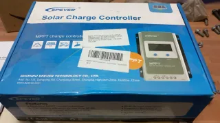 Controlador de carga solar EPEVER modelo 4210AN. *Con sonda de temperatura y cancelador. - Tecnología de control MPPT avanzada. - Alta eficiencia de seguimiento de potencia máxima. Max 100V. - Diseño de disipación de calor negativo. - Pantalla LCD informativa. - Múltiples modos de carga de trabajo. Lo compré por error y lo he llevado de repuesto de otra camper, pero nunca lo necesité y he vendido la camper... Vale 160€ en Amazon...