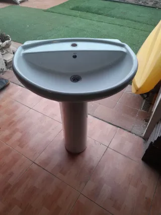 Lavabo de cerámica blanco con pedestal. - Diseño moderno y elegante. En buen estado . Marca roca