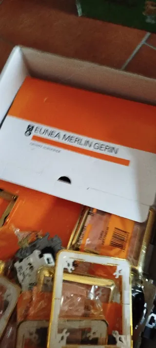 Se venden mecanismos Eunea Merlin Gerin. Hay placas de 1 y 2 elementos, sin usar pide y te busco lo que tengo. - enchufes, interruptores, conmutador - Color plata con marco en oro