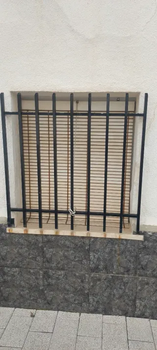Reja de hierro, para colocar con tacos en pared, también se le pueden añadir patas y embutir en pared. No se envía.