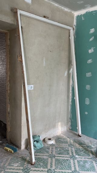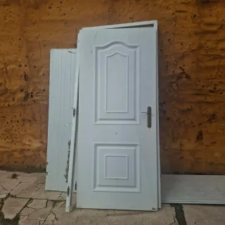 Se vende marco de puerta completo junto con la puerta de madera. Ideal para proyectos de renovación o para reemplazar una puerta existente. - Marco de madera blanco. - Puerta de madera blanca con paneles.