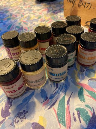 Lote de 12 botes de pintura DEKA-Bügel Farbe. - Colores variados. - Ideal para textiles. Se transfiere con calor Imposible comprar nuevos