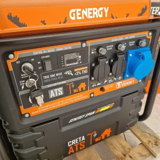 Marca/Modelo: GENERGY CRETA ATS con tecnología Inverter. - Potencia 230v monofásico de 7500W. - 3 Salidas AC230V-IP44. - Salida regulada de gran calidad (<3% THD), adecuada para alimentar equipos eléctricos y electrónicos domésticos. - Incluye cuadro con interruptores automáticos ante fallo de suministro de la Red (ATS), que arranca automáticamente el generador. Lo vendo porque decidí instalar fotovoltaica y este generador no sirve para ese caso. Después de 14 días tras la compra no me aceptaron devolución. Se incluyen todos los accesorios y la factura. En garantía. Idóneo como respaldo automático ante fallo de la Red eléctrica.