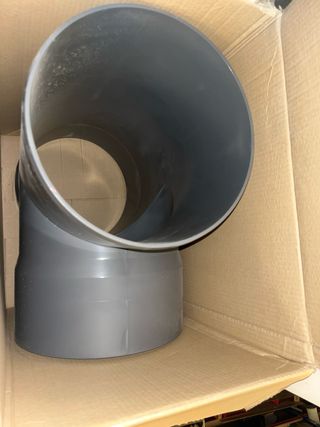 Codo de PVC para instalaciones de fontanería o saneamiento. - Diámetro: 315 mm - Ángulo: 87 grados Tengo 3