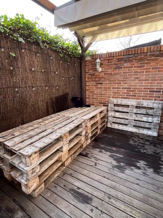 Dos palets de madera, ideales para proyectos de bricolaje o decoración. - Material: Madera. - Uso: Versátil para construcción o mobiliario.