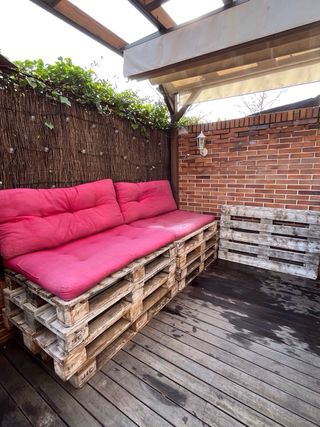 Lote de 9 europalets de madera con acabado en pintura blanca. - Palets de madera. - Acabado en pintura blanca. - Se regalan los cojines