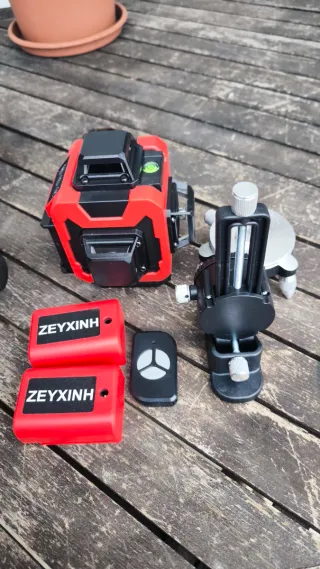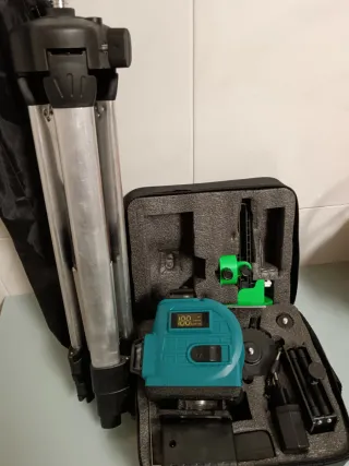 Nivel láser autonivelante 4x360 grados, completamente nuevo a estrenar. - Incluye trípode. - Incluye mando a distancia. - Incluye soporte de pared. - Incluye bolsa de transporte.