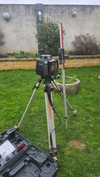 Nivel láser autonivelante con líneas de 360 grados. - Incluye trípode y accesorios. - Baterías recargables. - Mando a distancia.