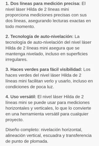 Nota: no incluye los accesorios HYCHIKA Nivel Láser Verde 45M, USB Carga, Láser Autonivelante, IP54 en Exteriores, 2 Láser Módulo Línea Cruzado Vertical/Horizontal, Soporte Magnético, 360°Rotante