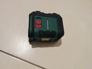 Nivel láser de líneas cruzadas recargable PARKSIDE perfomance a batería usado un par de veces - Proyección 360° con línea láser horizontal y dos verticales. - Precisión ±0.4 mm/m. - Rango de trabajo hasta 20 m. - Tiempo de aut nivelación aprox. 4 s. - Intervalo de aut nivelación ±3°. - Modos de proyección: aut nivelación/función péndulo. - Potentes imanes en el lado trasero de la carcasa. - Incluye trípode. - Incluye funda de transporte.