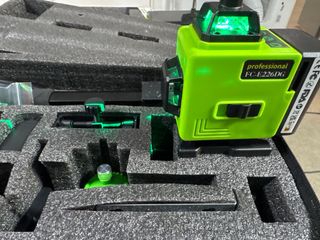 A ESTRENAR! Nivel láser profesional, 16 lineas verdes de alta visibilidad OSRAM, doble batería litio,6 horas de uso por cada una, autonivelación con alarma acústica, mando a distancia, múltiples modos de uso, incluye base de aluminio giratoria y diferentes accesorios para su uso en cualquier situación o necesidad, estandard ip45 resistente al agua y polvo, lineas precisas, y claras incluso a plena luz, trazado individual de líneas a demanda del trabajo...incluye un cómodo maletín de nylon, para guardarlo y protegerlo ordenadamente, se hace envío, cualquier duda preguntar un saludo..