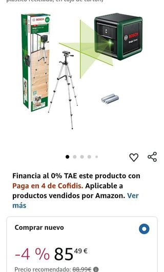 ¡El cristal tiene una grieta, pero no afecta al funcionamiento.! Bosch Nivel Láser de Líneas Cruzadas Quigo verde con trípode (láser verde para mejor visibilidad, carcasa de plástico reciclado, en caja de cartón) Marca Bosch Material Plástico Color Green EstiloLaser Modo de funcionamientoManual Fabricante Bosch Visibilidad máxima: Tecnología de láser verde para una gran visibilidad incluso en condiciones de alta luminosidad Resultados precisos: Para conseguir un nivelado muy preciso de +/-0,6 mm/m y un alcance de hasta 12 m