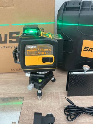 Se vende nivel láser de línea verde con rotación de 360 grados, ideal para trabajos de construcción y decoración. Incluye todos los accesorios que se ven en las fotos. - Carcasa robusta y compacta. - Incluye maletín de transporte. - Base giratoria y trípode.