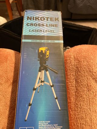 Nivel láser con trípode, ideal para trabajos de precisión. Está en buen estado. - Incluye nivel láser y trípode. - El trípode es de color bronce. - El nivel láser es de color verde y negro.