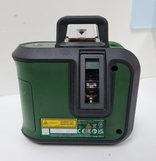 Nivel láser con líneas verdes. - Proyecta líneas horizontales y verticales. - Indicador de batería.