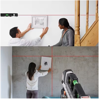 produce 16 líneas láser (8 horizontales, 8 verticales) 4D de 360° genera 2 haces de 360°. ofreciendo una visibilidad 4 veces mayor que los haces rojos precisión de ±1/10 de pulgada a 2.5 metros (8 pies) y un alcance máximo de trabajo de 30 metros (100 pies). El brillo es ajustable del 1% al 100% Cumple con el estándar de seguridad Clase II (potencia de salida <1mW) Cuando el ángulo de inclinación es 3°, el láser se nivela automáticamente presionado el botón "EXTERIOR" durante 3 segundos para activar el modo manual Incluye 2 baterías recargables, proporcionando hasta 8 horas de trabajo continuo