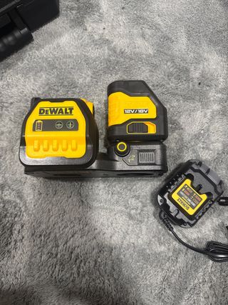 Se vende nivel láser de la marca Dewalt, en color amarillo y negro. Incluye una batería y un cargador. - Nivel láser Dewalt. - Batería Dewalt 12V 2Ah. - Cargador Dewalt.
