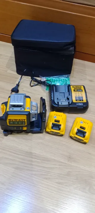 Se vende nivel láser DeWalt de 12 líneas, ideal para trabajos de construcción y medición. - Incluye maletín de transporte. - Batería DeWalt 2.0 Ah. - Cargador. - Gafas de protección. - Diana de medición.