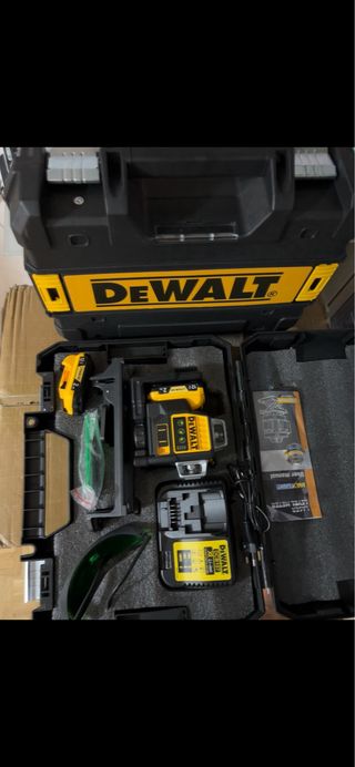 Nivel láser DeWalt con su maletín y accesorios. - Incluye gafas de protección. - Batería DeWalt DCB107 XR Li-ion. - Cargador DeWalt. - Manual de usuario. - replica - ojo leer bien la descripción - negociable