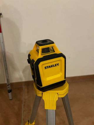 Nivel láser de la marca Stanley en color amarillo. Ideal para trabajos de construcción y bricolaje. - Diseño compacto y robusto. - Montaje compatible con trípode.