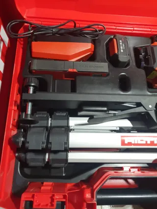 Nivel láser Hilti PM 50 MG 22 NURON.de 2024 usado con marcas pocas funciona perfectamente, cargador C4 de 2024 en muy buen estado, batería B22 55 de 2024 en muy buen estado ,soporte PMA 100 X2 PINZA Y SOPORTE, trípode PMA 20 , receptor PMA 32 Todo en muy buen estado con pocas marcas - Incluye maletín original - Incluye accesorios originales