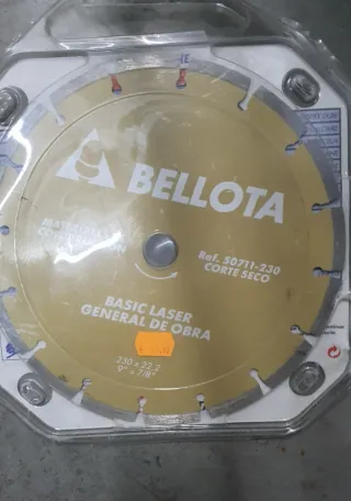 Disco de corte Bellota para materiales de construcción. - Modelo: Basic Laser General de Obra. - Referencia: 50711-230. - Tipo de corte: Seco. - Dimensiones: 230 x 22,2 mm (9 x 7/8). - Precio original: € 47,80.