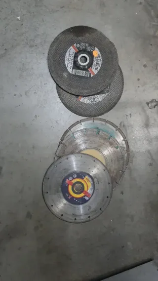 Lote de discos de diamante para trabajos de obra. Incluye discos de diferentes marcas y modelos. - Disco HiKOKI Ø 230 x H 22,23 MM - Disco SINTER BETON Ø 230 - Disco LASER ENERA - Disco de marca no identificada