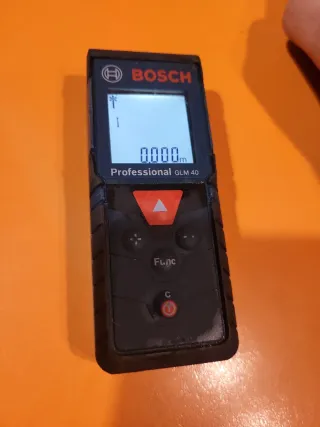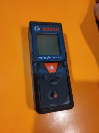Medidor láser Bosch GLM 40 Profesional. - Pantalla digital. - Botones de función y borrado.