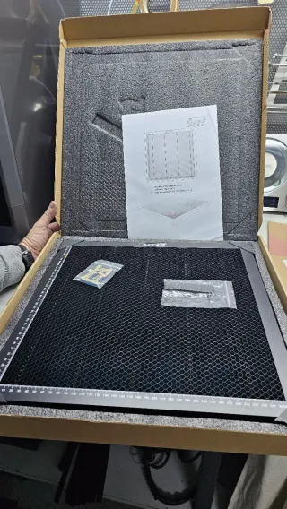 Mesa de trabajo con estructura de panal de abeja, ideal para proyectos de corte y grabado láser. Incluye reglas integradas para mediciones precisas. - Superficie de trabajo de panal de abeja. - Reglas laterales para facilitar el posicionamiento. - Incluye accesorios de montaje. Tengo 2, una nueva, nunca sacada de su caja y otra usada dos veces. El precio es 30 euros la usada y 35 la nueva.