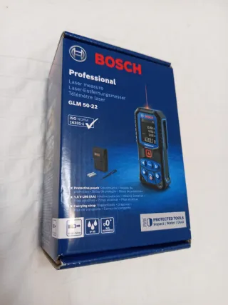 Medidor láser Bosch Professional GLM 50-22. • Producto original. • Totalmente nueva a estrenar sin abrir, precintado de fabrica. • NO Negociable, Hago envíos. - Incluye funda protectora. - Incluye 2 pilas AAA (LR03). - Incluye correa de transporte.