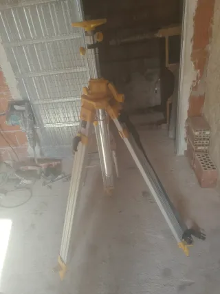 Trípode robusto y ajustable, ideal para trabajos de medición y construcción. - Construcción duradera con patas extensibles. - Base estable para asegurar la precisión. - Diseño en color amarillo y plateado.