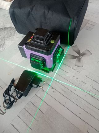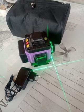 Nivel laser 16 lineas verdes a 360 grados todas ellas Con todos sus accesorios que te puedan hacer falta Dos baterías Cargador de baterías tipo cargador móvil que podrías utilizar en caso necesidad para el teléfono Uso profesional NUEVO a estrenar