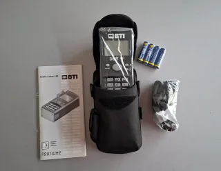 Medidor láser BTI Disfix-Laser 150 metros de distància. Incluye: ●Funda protectora ● 4 pilas ●Pieza intercambiable para mediciones esquineras o planas ●Manual de instrucciones