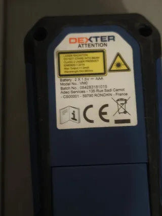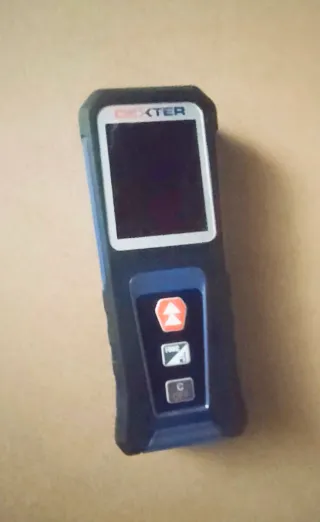 Medidor laser de la marca Dexter con pantalla digital.