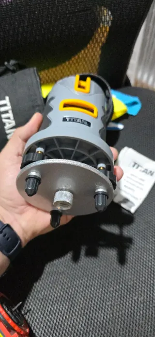 Nivel láser de la marca Titan. Se enciende las luces pero nose si funciona bien del todo, se ve las luces flojos y las rayas no están rectas al nivel. Nose si le faltará ajuste nivel o algo asi. Sin devolución