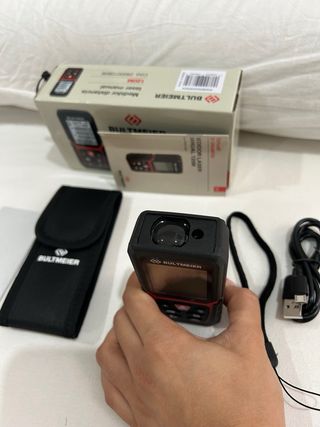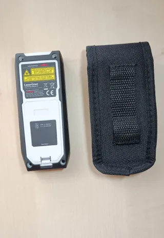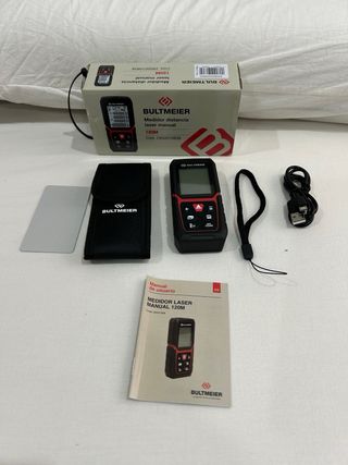 Medidor laser en perfecto estado y con una longitud máxima de medición de 25 metros. Ha tenido muy poco uso.