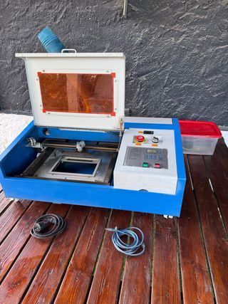 Máquina de corte y grabado láser CO2 de 40W. Ideal para diversos materiales. - Incluye tubo de extracción. - Botón de parada de emergencia.
