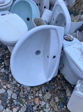 Lavabo grande, con pie, en buen estado, con sumidero. Y el inodoro con tapa a juego 5 euros mas