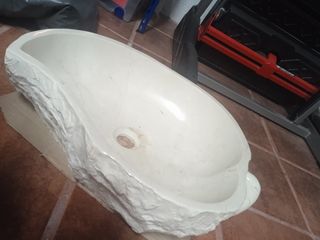 lavabo de piedra natural en forma de hoja,color beige,nuevo sin estrenar,por fuera rustico,por dentro pulido.