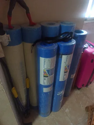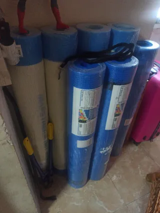 Se venden 7 rollos de malla de fibra de vidrio. - Malla de fibra de vidrio. - Color azul y blanco.