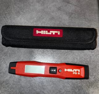 Medidor láser Hilti PD 5 en color rojo. Incluye funda protectora. - Diseño compacto y ergonómico. - Pantalla digital. - Botones de control.