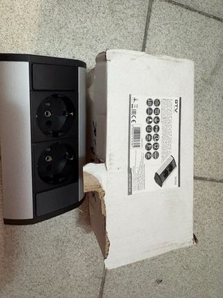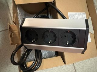 Regleta de enchufes de la marca EVOLINE con tres tomas. - Diseño moderno en aluminio y negro. - Cable de alimentación incluido.