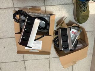 Regleta de enchufes GTV modelo Mini. - Diseño moderno en color plata y negro. - Dos tomas de corriente tipo F (Schuko). - Compacta y fácil de instalar.