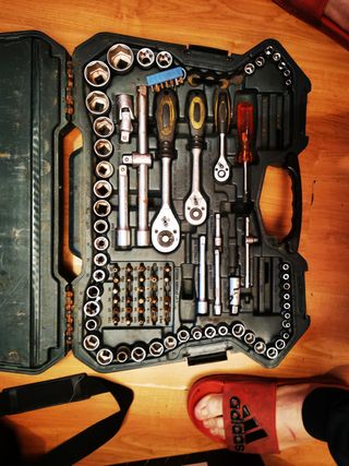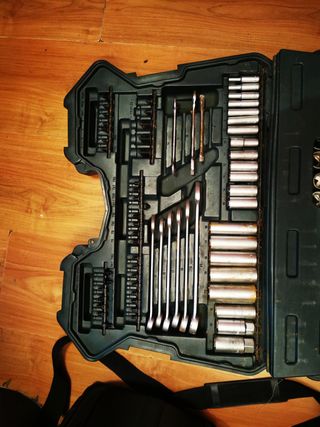 Completa caja de herramientas de la marca Mannesmann, ideal para reparaciones y mantenimiento. - Incluye una variedad de vasos, llaves de carraca y destornilladores. - Diseñada para organizar y proteger tus herramientas. Precio no negociable ❌ No me interesan las ofertas También envío por impost