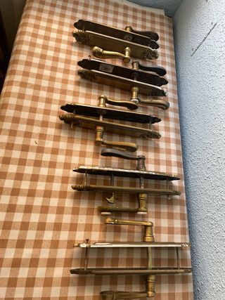 Cinco juegos manillas vintage latón