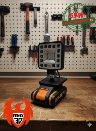 FABRICADO CON FILAMENTO PET-G DE ALTA CALIDAD, MÁS RESISTENTE A LA TRACCIÓN, A LOS GOLPES Y A LAS TEMPERATURAS QUE EL FILAMENTO PLA UTILIZADO EN OTROS DISEÑOS NUEVO DISEÑO ESPECIAL PARA PROFESIONALES, MÁS ROBUSTO Y DURADERO, SIN PIEZAS PEGADAS QUE PUEDAN DESPEGARSE CON INTERRUPTOR DE ENCENDIDO Y APAGADO FOCO LED DE 136W Y 15.000 LUMENES, EL FOCO MÁS POTENTE PARA LOS PROFESIONALES MÁS EXIGENTES Válido para toda la gama Fabricado con impresora 3D Se puede fabricar para otras marcas, Makita, Parkside, Bosch, Milwaukee, Dewalt, Worx, Hilti, Metabo, etc, pregunta por la tuya BATERÍA NO INCLUIDA